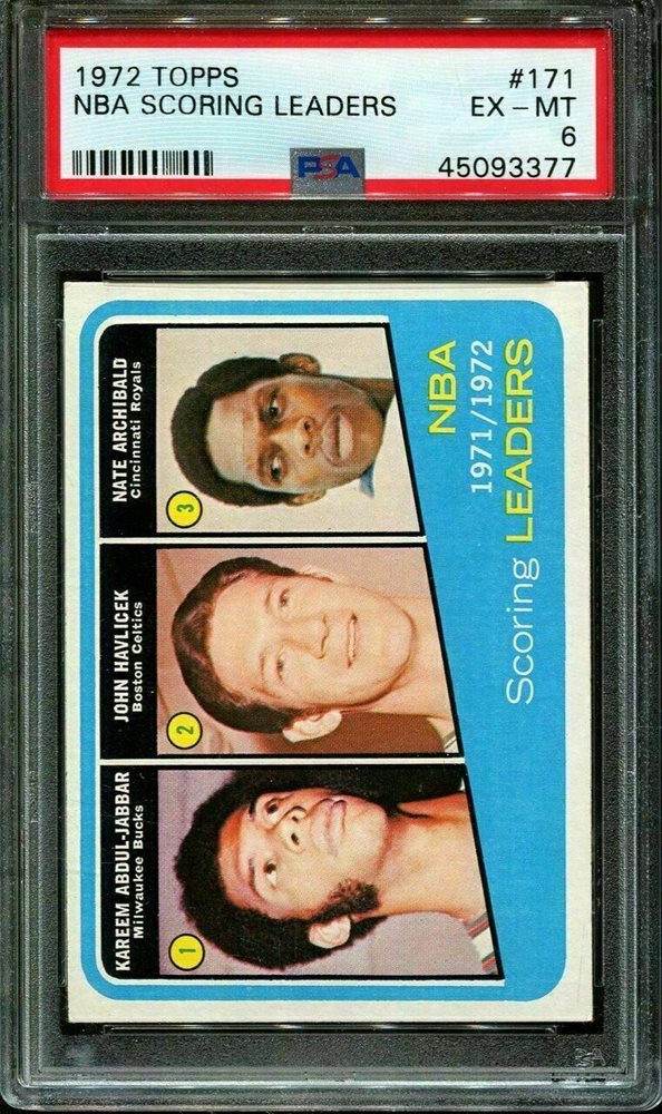 1972 TOPPS #171 K.ABDUL-JABBAR-JOHN HAVLICEK-NATE ARCHIBALD PSA 6 K2853950-377