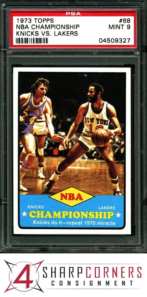 1973 TOPPS #68 NBA CHAMPIONSHIP KNICKS VS. LAKERS PSA 9 A3547033-327