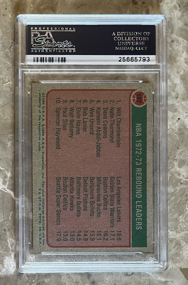 1973 TOPPS #157 NBA Rebound Ldrs PSA 9 Mint Wilt Chamberlain 3 HOF Player POP 68