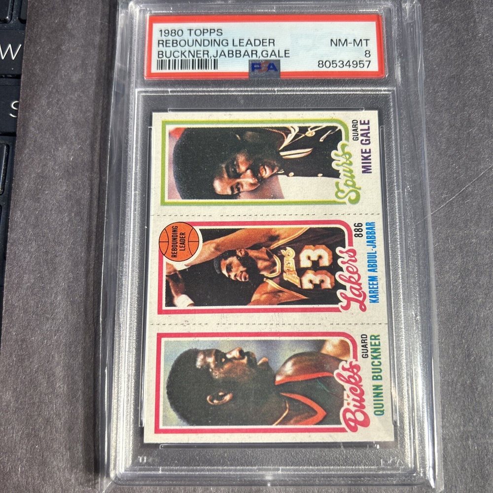 1980 TOPPS Rebounding Leader Buckner, Kareem Abdul-Jabbar, Gale PSA 8 HOF Icon