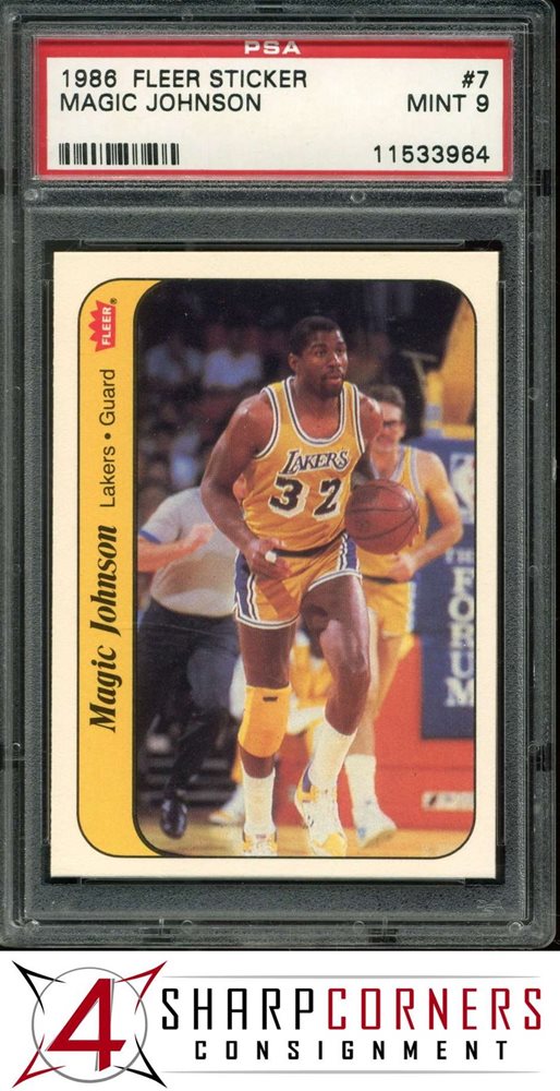 1986 FLEER STICKER #7 MAGIC JOHNSON LAKERS HOF PSA 9
