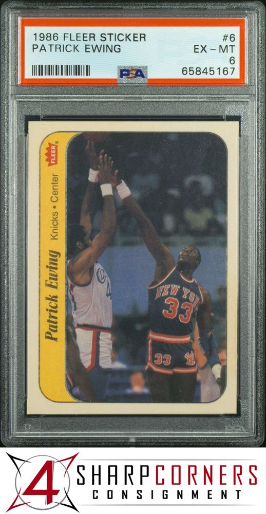 1986 FLEER STICKER #6 PATRICK EWING RC KNICKS HOF PSA 6