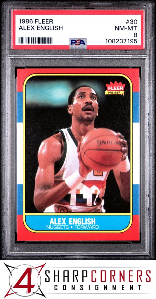 1986 FLEER #30 ALEX ENGLISH NUGGETS HOF PSA 8
