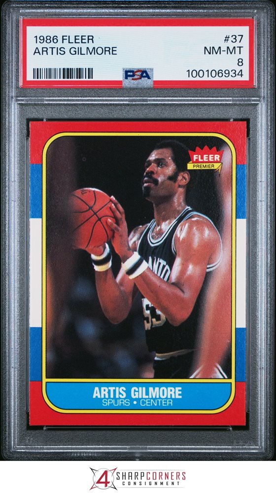 1986 FLEER #37 ARTIS GILMORE SPURS HOF PSA 8