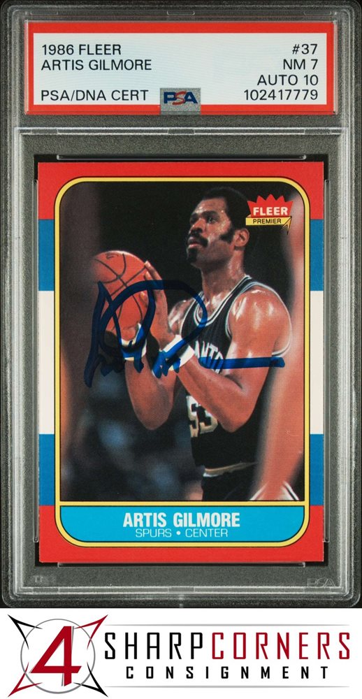 1986 FLEER #37 ARTIS GILMORE SPURS HOF PSA 7 DNA AUTO 10