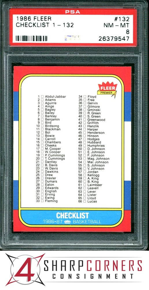 1986 FLEER #132 BASKETBALL CHECKLIST 1-132 PSA 8