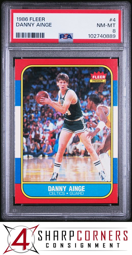 1986 FLEER #4 DANNY AINGE RC CELTICS PSA 8