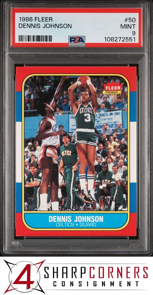 1986 FLEER #50 DENNIS JOHNSON CELTICS HOF PSA 9