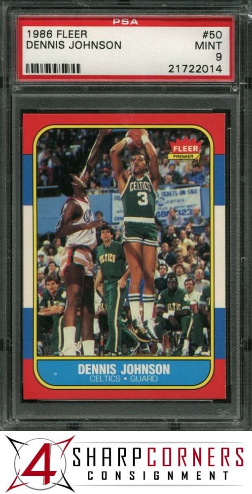 1986 FLEER #50 DENNIS JOHNSON CELTICS HOF PSA 9