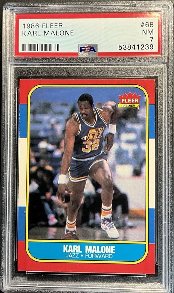 1986 FLEER #68 KARL MALONE ROOKIE RC PSA 7 NM