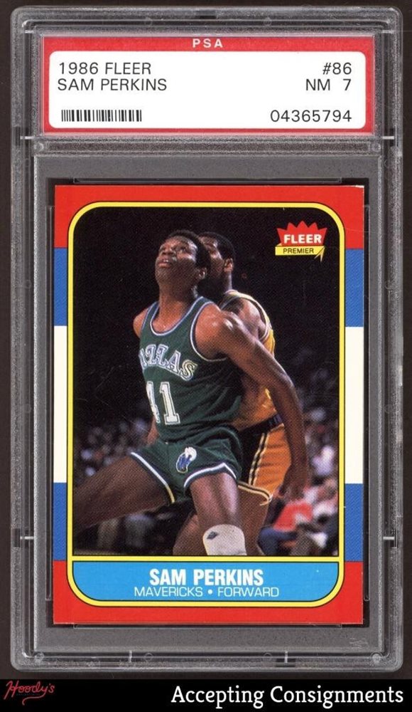 1986-87 Fleer #86 Sam Perkins SET BREAK PSA 7 NM MAVERICKS