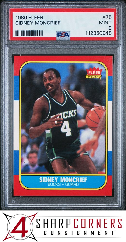 1986 FLEER #75 SIDNEY MONCRIEF BUCKS HOF PSA 9