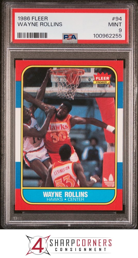 1986 FLEER #94 WAYNE TREE ROLLINS HAWKS PSA 9