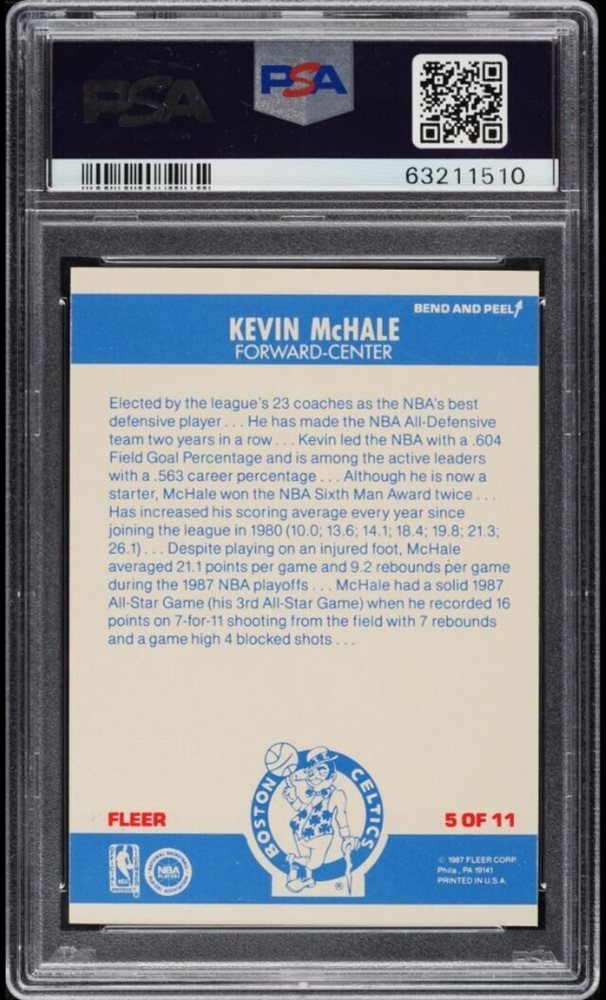 1987 FLEER BASKETBALL Sticker Kevin McHale #5 PSA 10 GEM MINT Pop 17 Low Pop