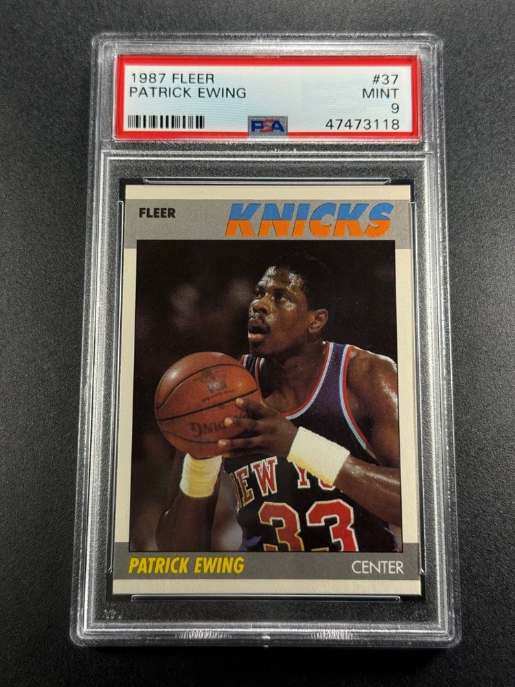 PATRICK EWING 1987 87-88 FLEER #37 CARD PSA 9 MINT NBA NY KNICKS (SET BREAK)