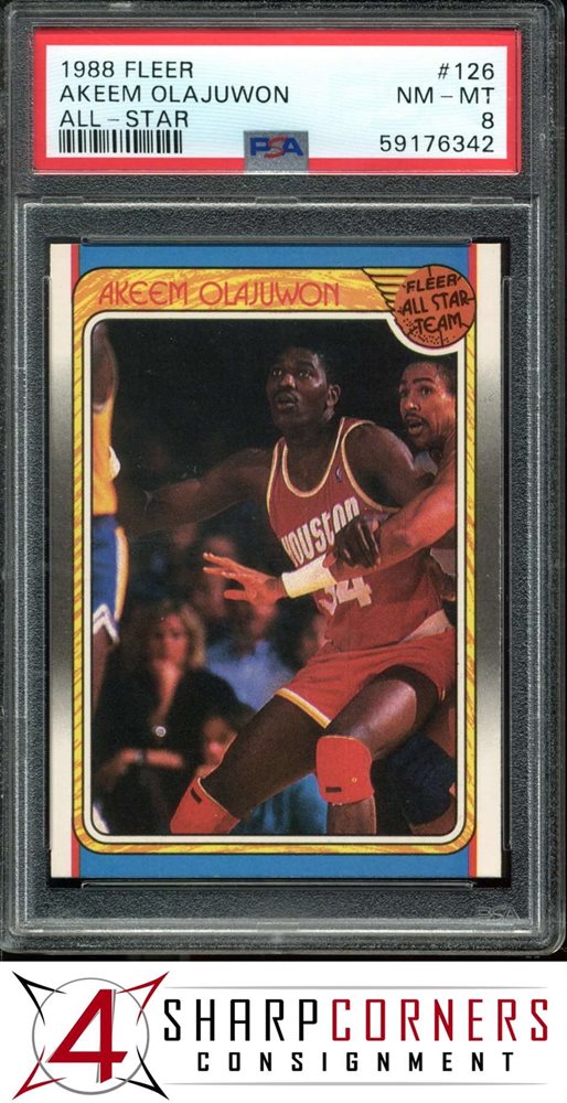 1988 FLEER ALL-STAR #126 AKEEM OLAJUWON ROCKETS HOF PSA 8