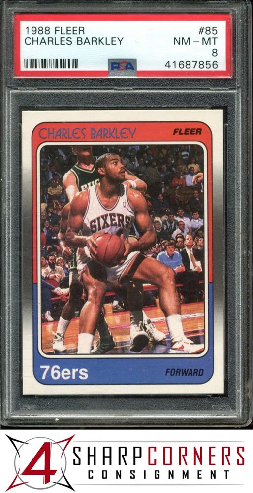 1988 FLEER #85 CHARLES BARKLEY 76ERS HOF PSA 8