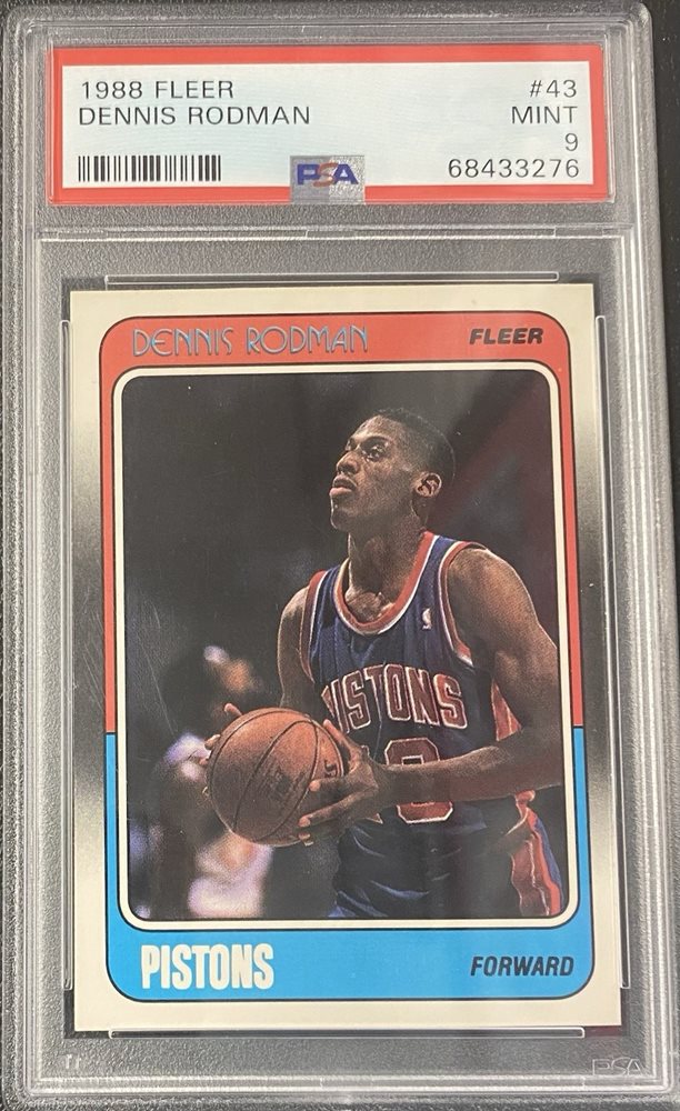 1988 FLEER Dennis Rodman ( DETROIT PISTONS ) ROOKIE RC PSA MINT 9 CARD #43