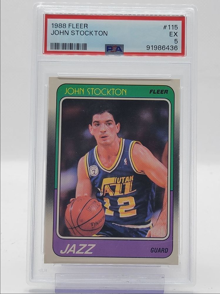 JOHN STOCKTON 1988-89 FLEER NBA BASKETBALL ROOKIE JAZZ #115 RC PSA 5 Q1518