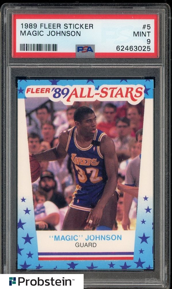 1989 Fleer Sticker #5 Magic Johnson Los Angeles Lakers HOF PSA 9 MINT