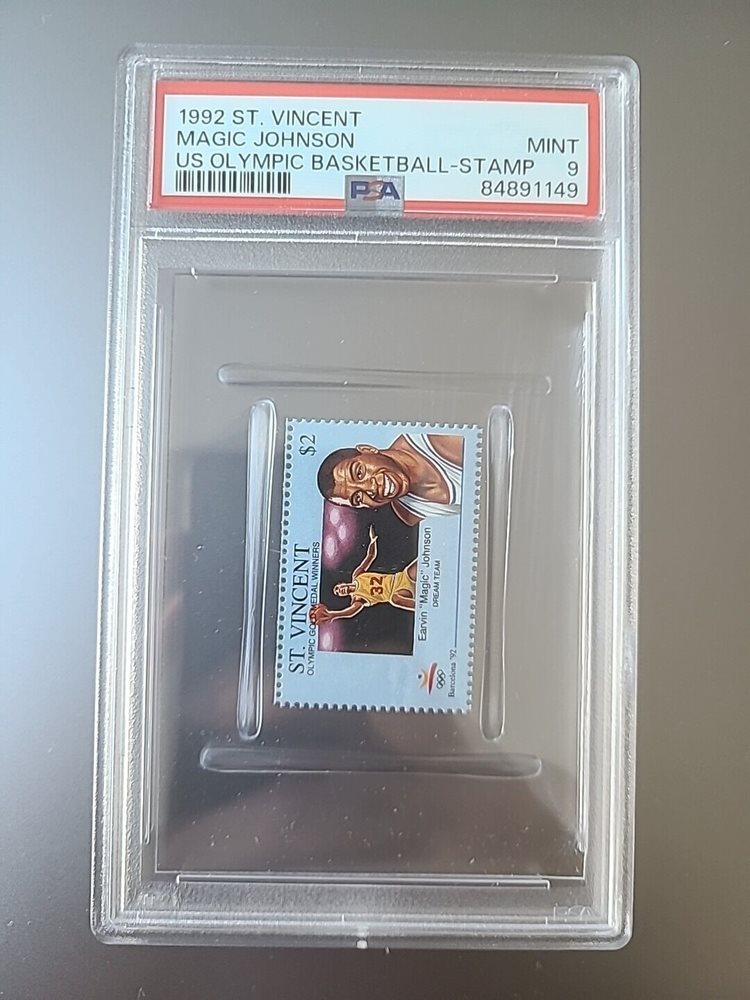 1992 St Vincent Gold Medal Winners Stamps Magic Johnson PSA 9 HOF