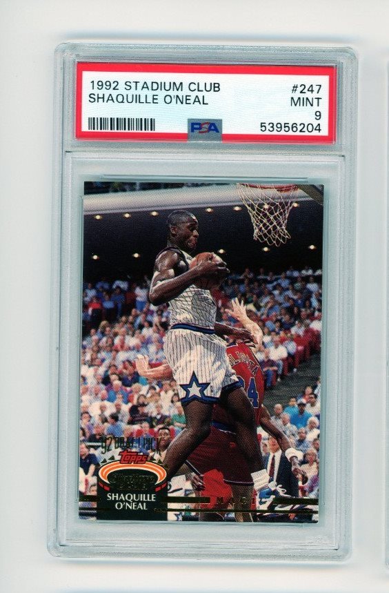 SHAQUILLE O'NEAL 1992-93 STADIUM CLUB ROOKIE RC, ORLANDO MAGIC, HOF - PSA 9