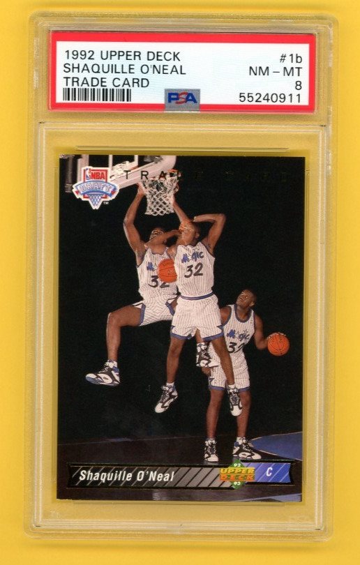 SHAQUILLE O'NEAL 1992 UPPER DECK TRADE CARD #1B ROOKIE RC PSA 8