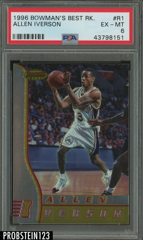 1996-97 Bowman's Best Rookie #R1 Allen Iverson 76ers RC Rookie HOF PSA 6 EX-MT