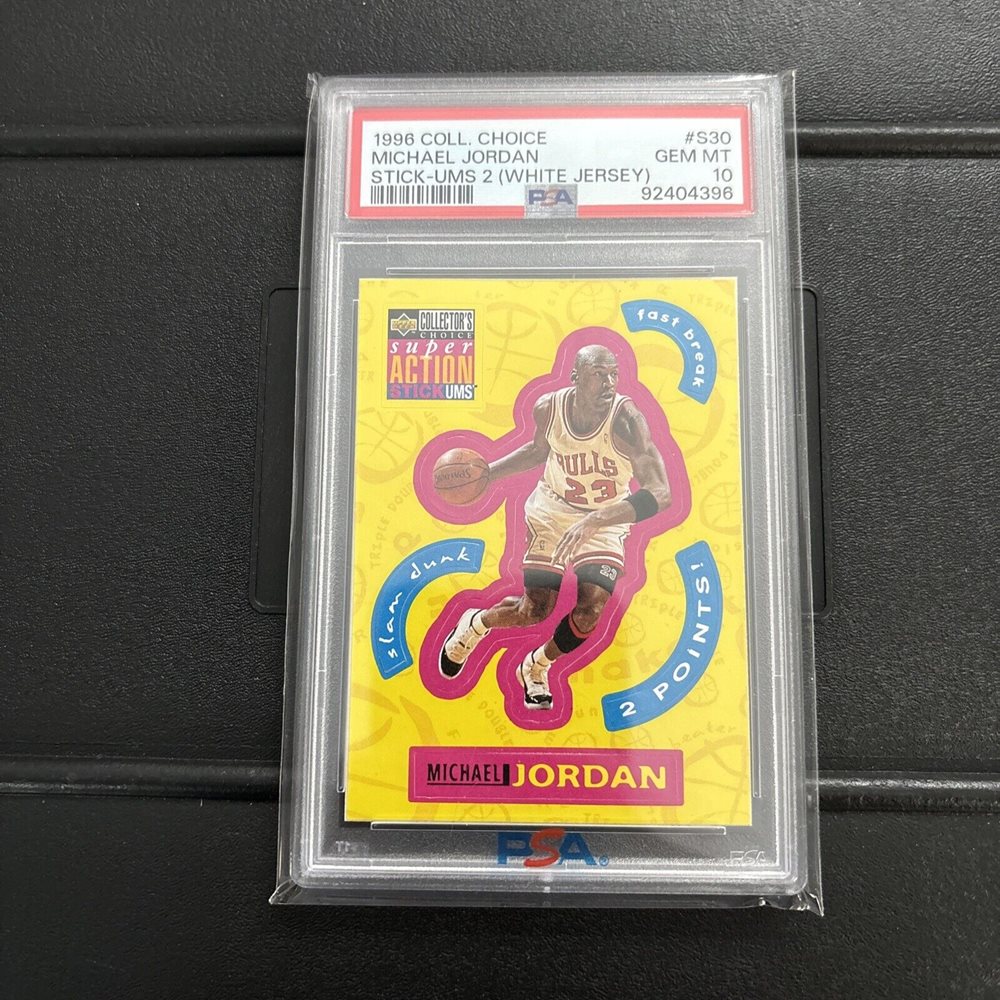 1996-97 Collectors Choice Stick- Ums #S30 Michael Jordan White Jersey PSA 10 HOF