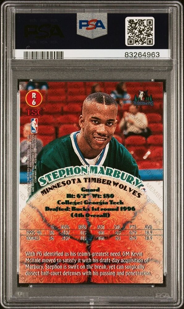 Auction Prices Realized Basketball Cards 1996 STADIUM CLUB ROOKIES 2 Stephon Marbury