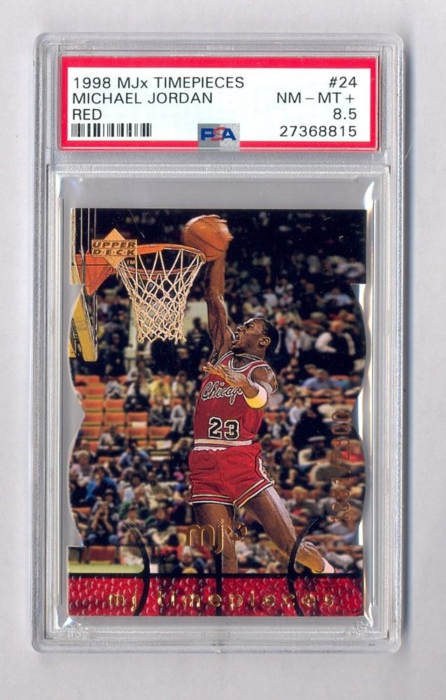 MICHAEL JORDAN 1998 UD MJx TIMEPIECES #24 DIE-CUT RED 1881/2300 PSA 8 NM-MINT+