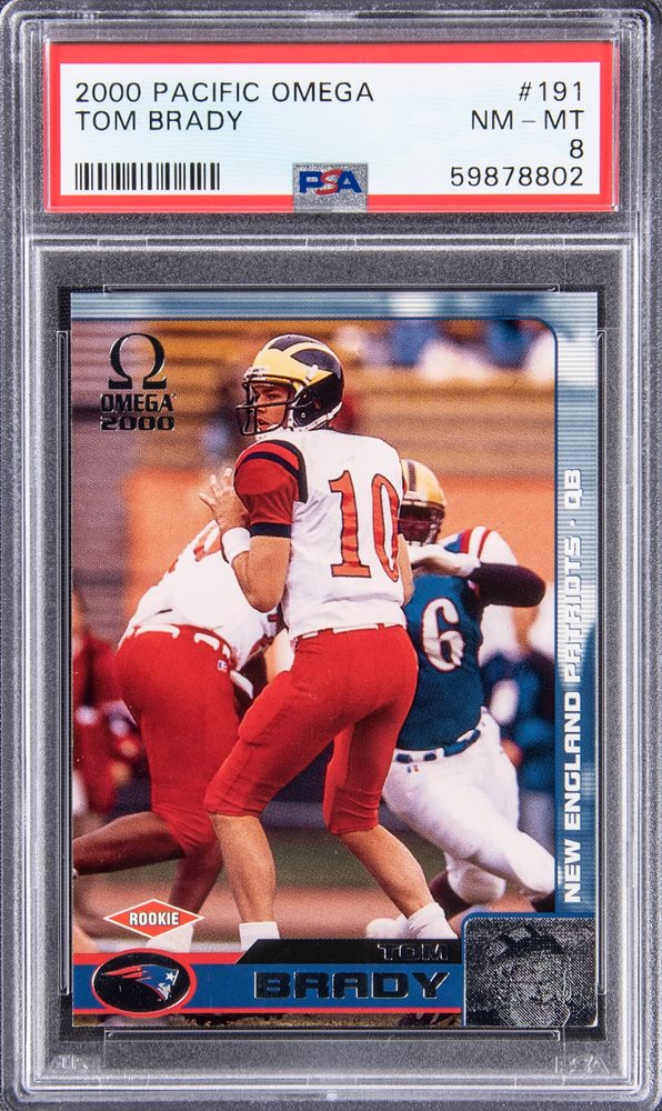 2000 Pacific Omega #191 Tom Brady Rookie Card (#294/500) - PSA NM-MT 8