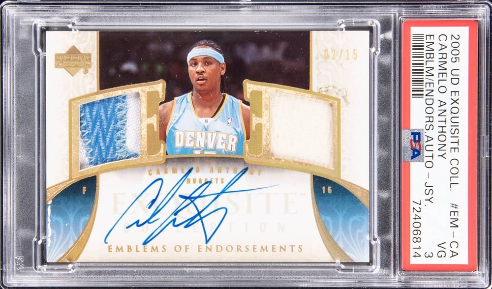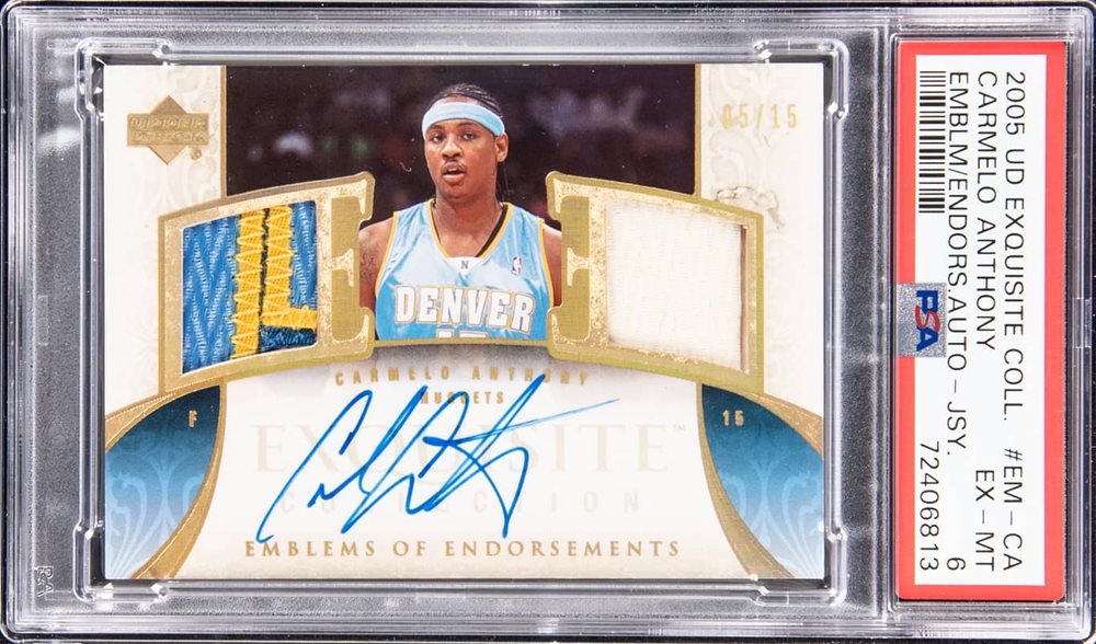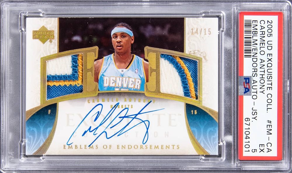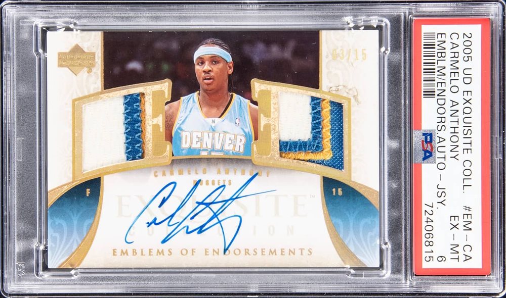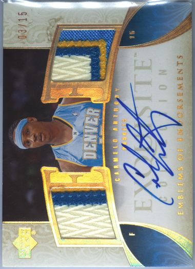 Auction Prices Realized Basketball Cards 2005 UD EXQUISITE COLLECTION EMBLEMS OF ENDORSEMENTS JERSEY AUTOGRAPHS Carmelo Anthony