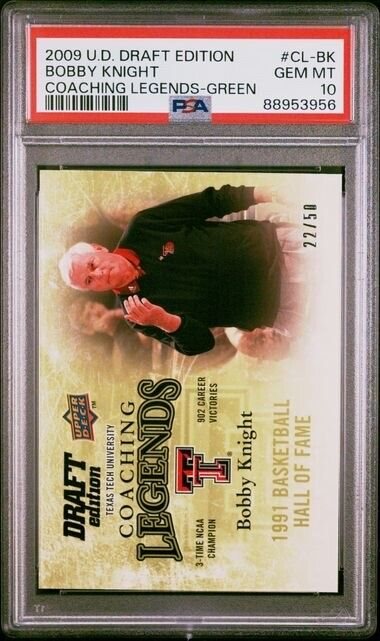 2009 Upper Deck Draft Edition BOBBY KNIGHT Coaching Legend Green /50 956 PSA 10