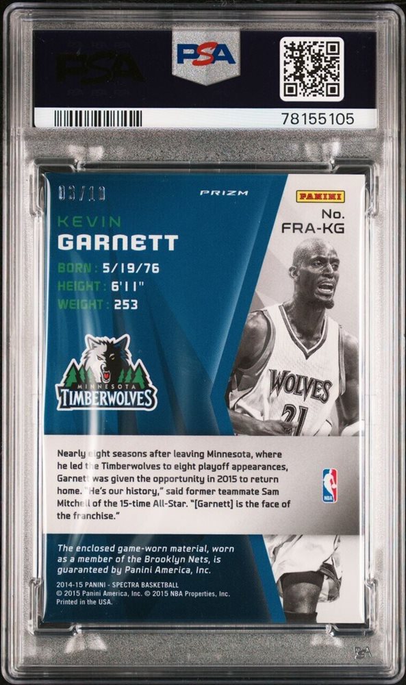 Auction Prices Realized Basketball Cards 2014 PANINI SPECTRA FRANCHISE FABRICS PRIZM Kevin Garnett