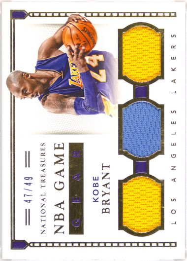 Auction Prices Realized Basketball Cards 2015 PANINI NATIONAL TREASURES GAME GEAR TRIPLES Kobe Bryant