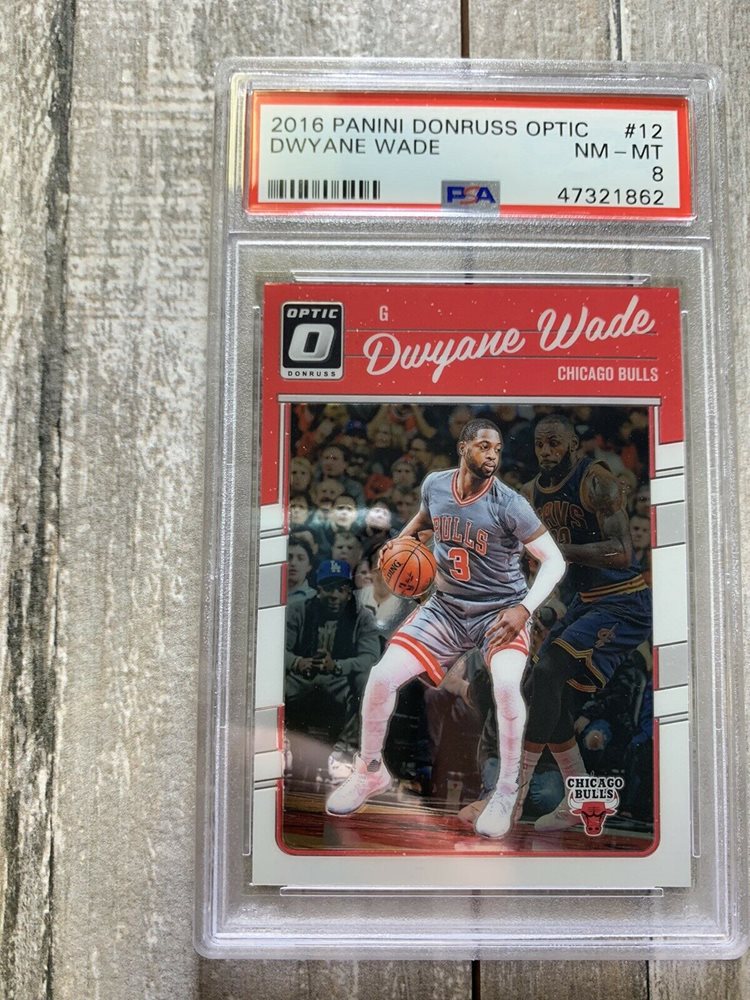 2016-17 Donruss Optic Dwyane Wade Bulls Heat (LeBron in photo) PSA 8 PMJS 62