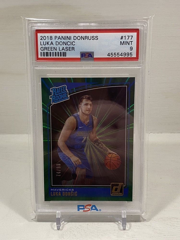 2018 Panini Donruss Luka Doncic Green Laser PSA 9 /99 SP Color Match Beauty Mavs