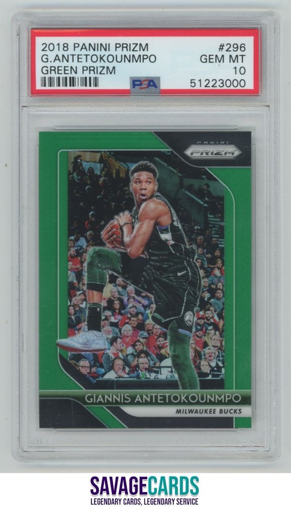 2018-19 Panini Prizm Green Prizm Giannis Antetokounmpo PSA 10 #296 Milwaukee