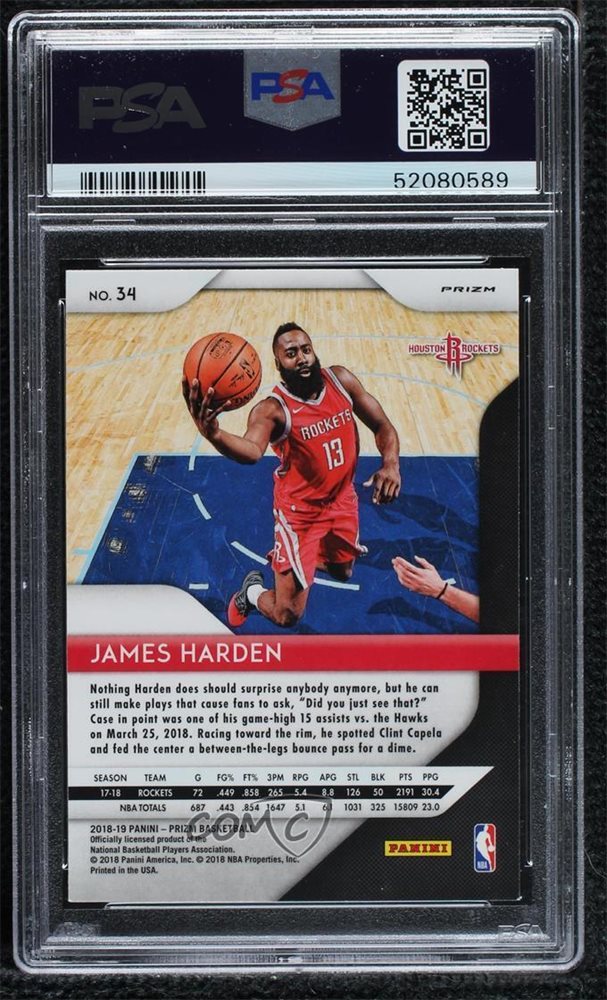 2018-19 Panini Prizm Silver Prizm James Harden #34 PSA 9 MINT