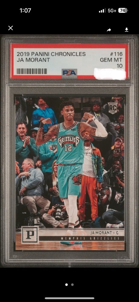 2019-20 Panini Chronicles -Ja Morant Rookie, Sean Tuohy in background PSA 10