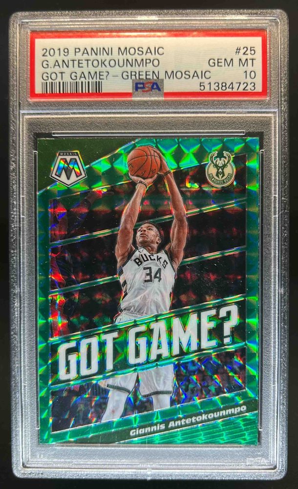 2019-20 Mosaic Giannis Antetokounmpo Got Game Green #25 Bucks PSA 10