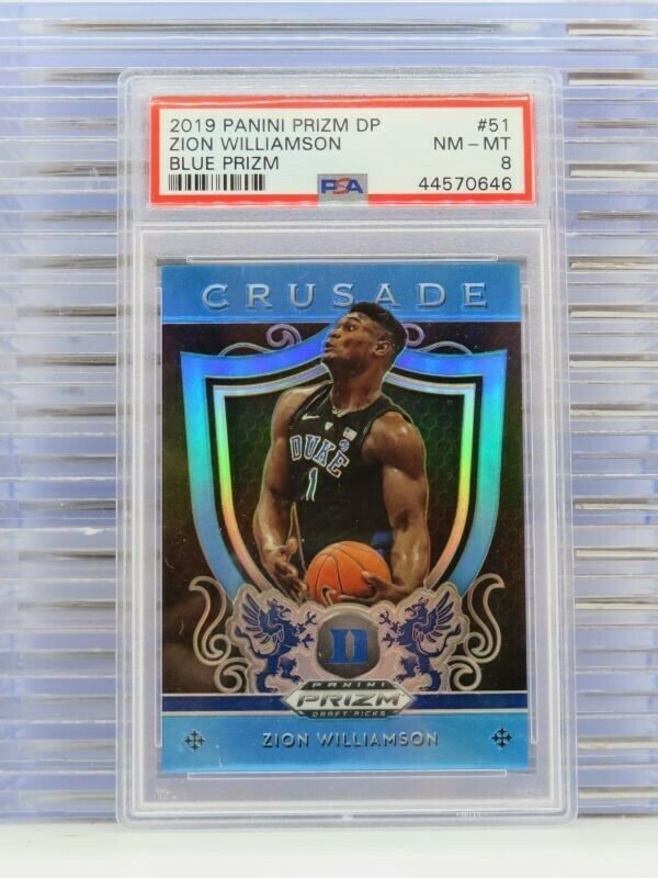 2019-20 Prizm Draft Picks Zion Williamson Blue Prizms Crusade RC #/30 PSA 8 G54
