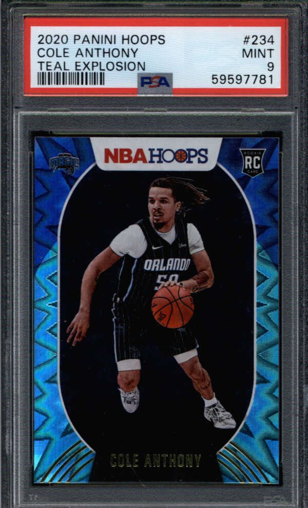 COLE ANTHONY 2020/21 PANINI HOOPS #234 PSA 9 MINT TEAL EXPLOSION ROOKIE SS4762
