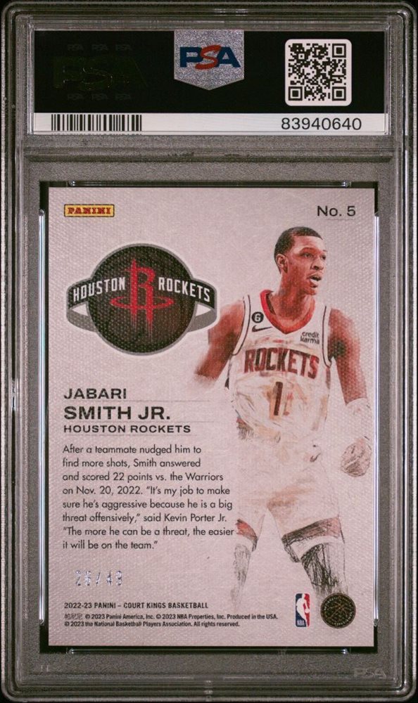 Auction Prices Realized Basketball Cards 2022 PANINI COURT KINGS WORKS IN PROGRESS Jabari Smith Jr.
