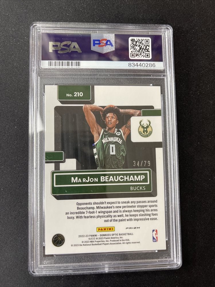 2022-23 Donruss Optic MarJon Beauchamp Pink Velocity Rated Rookie SSP /79 PSA 9