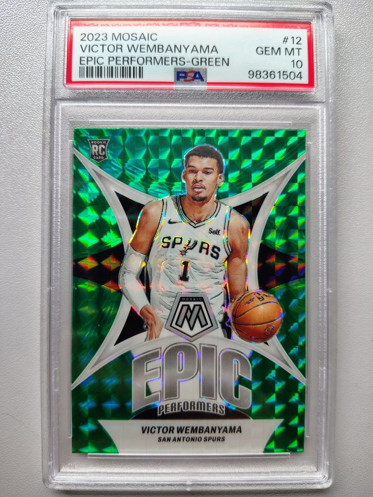 2023-24 Panini Mosaic Victor Wembanyama #12 Green Epic Performers RC PSA 10 Mt