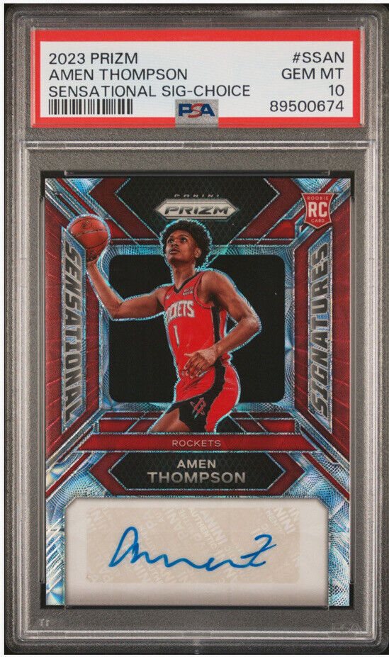 2023-24 Panini Prizm Amen Thompson Red Choice Prizm RC Rookie Auto #61/88 PSA 10