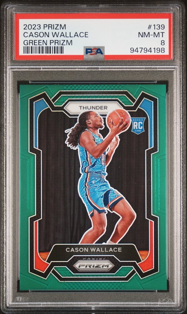 2023 PANINI PRIZM GREEN PRIZM #139 CASON WALLACE ROOKIE RC PSA 8