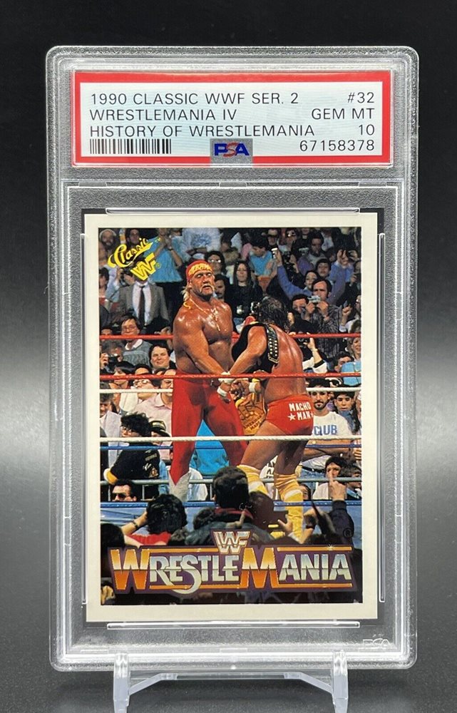 1990 CLASSIC WWF Wrestle Mania 4 #32 HULK HOGAN-MACHO MAN PSA 10 Pop 7 New Slab